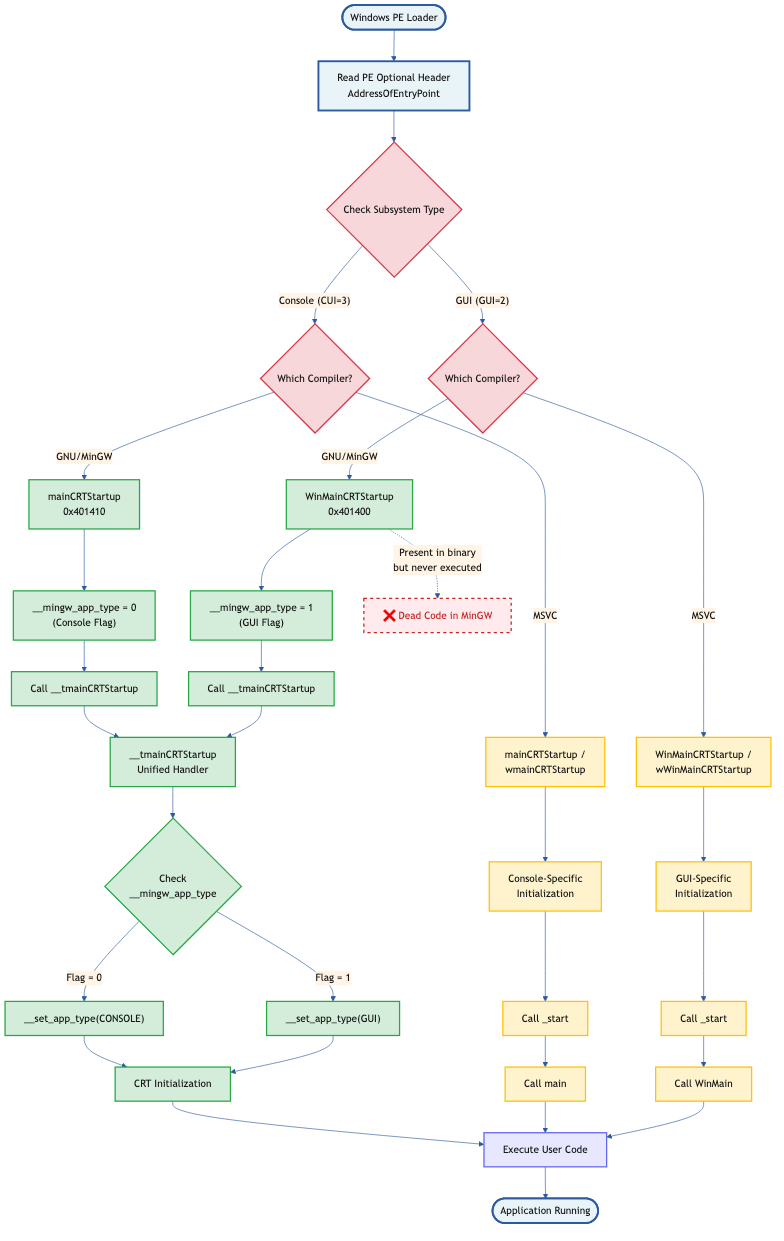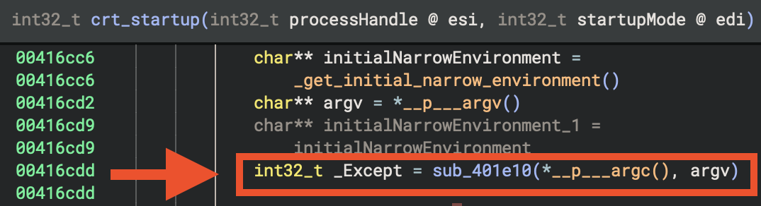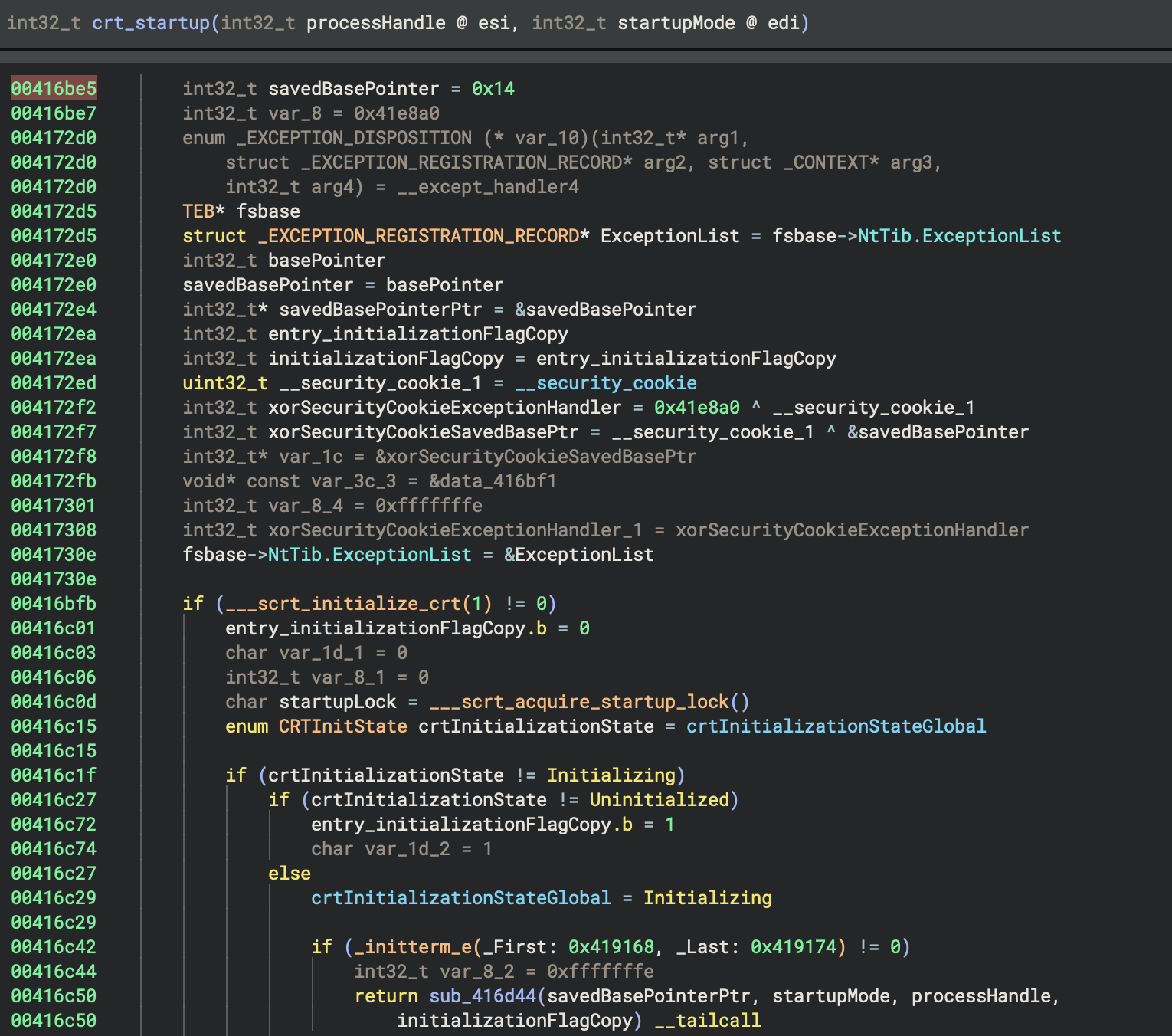 | Entry Point | crt_startup() | __scrt_common_main_seh() |