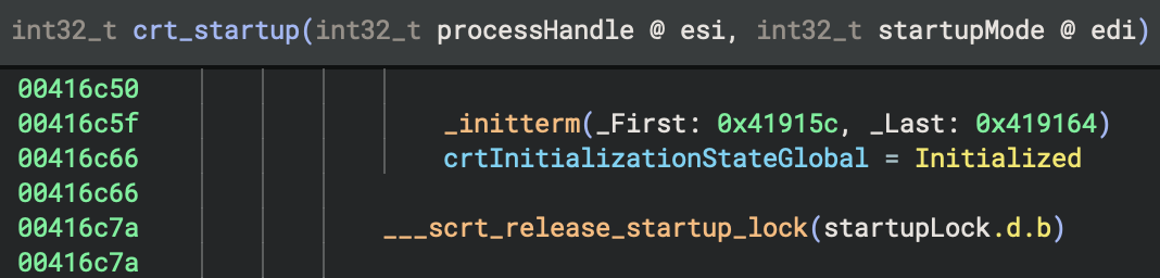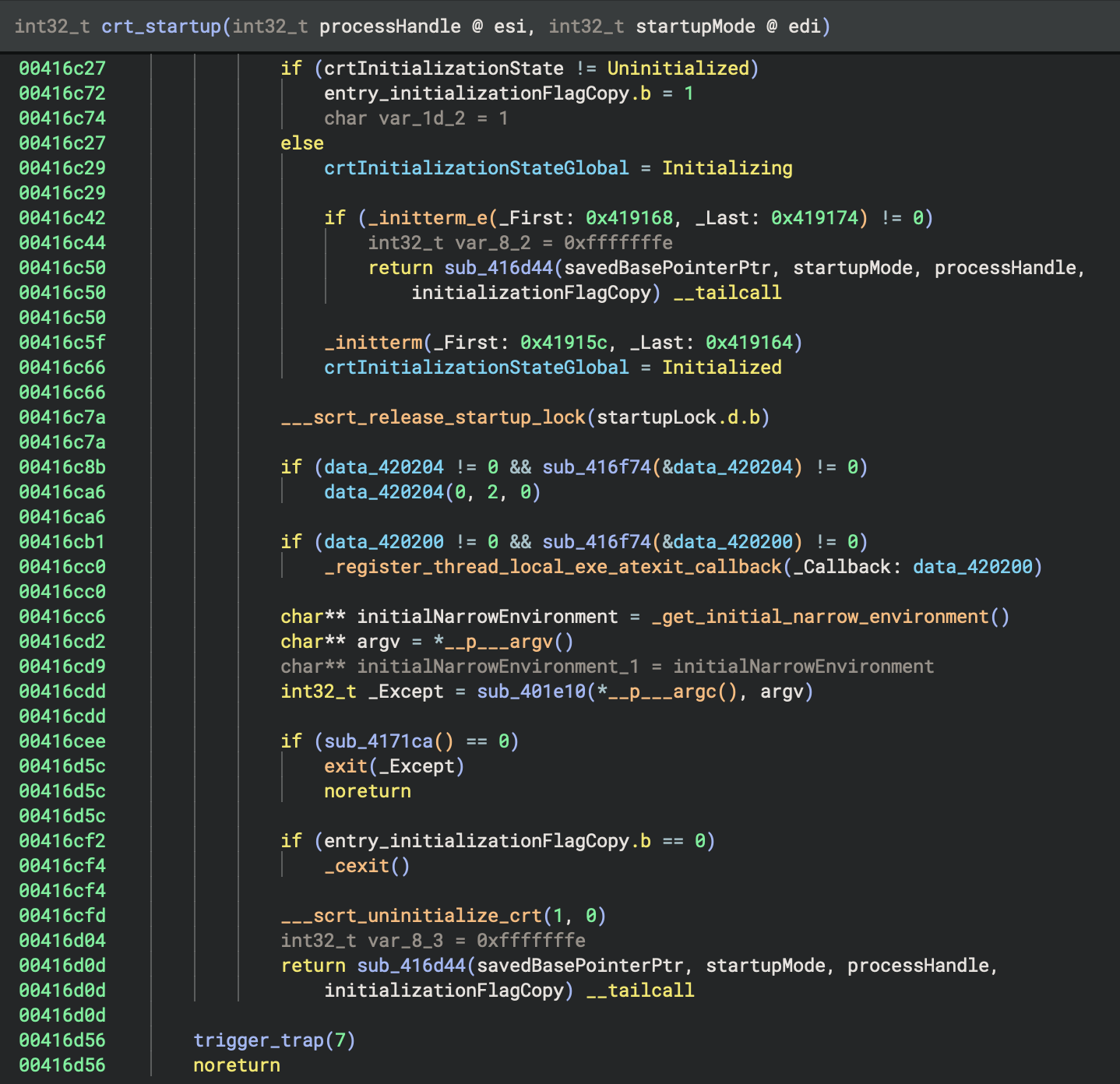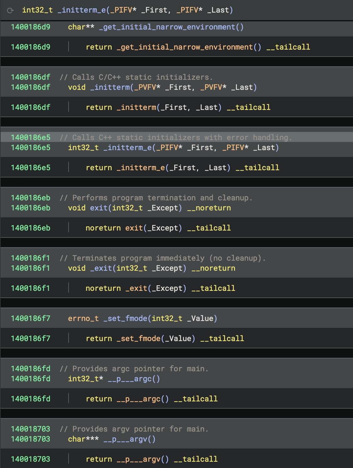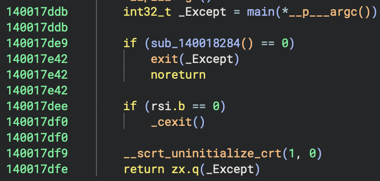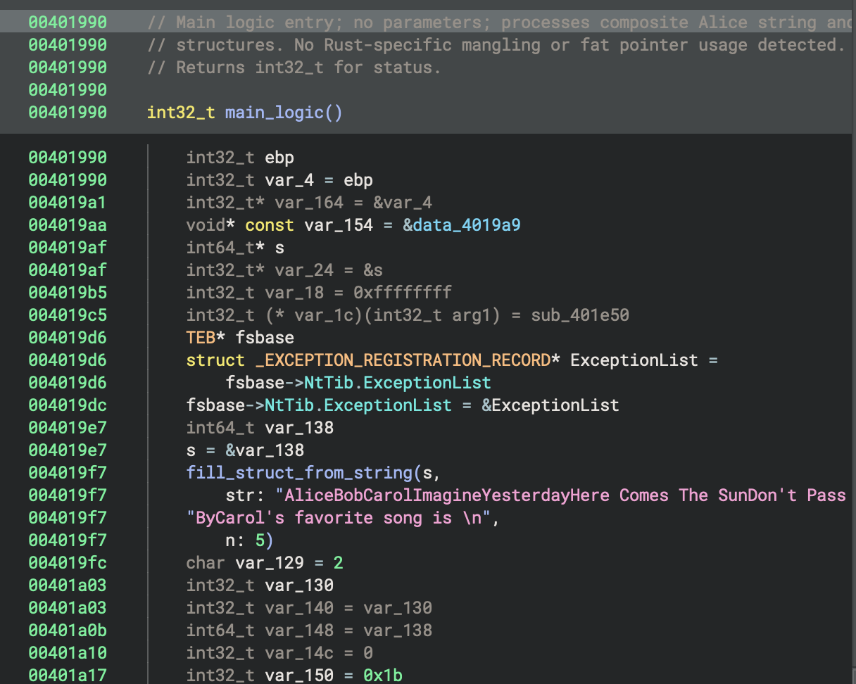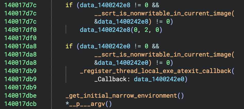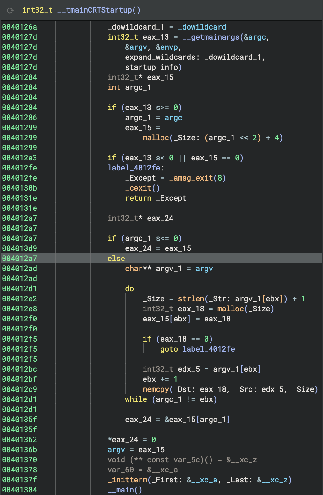 The wrapper function you see (main calling sub_140002520) is Rust-specific - it’s the Rust standard library’s runtime initialization that C doesn’t need.