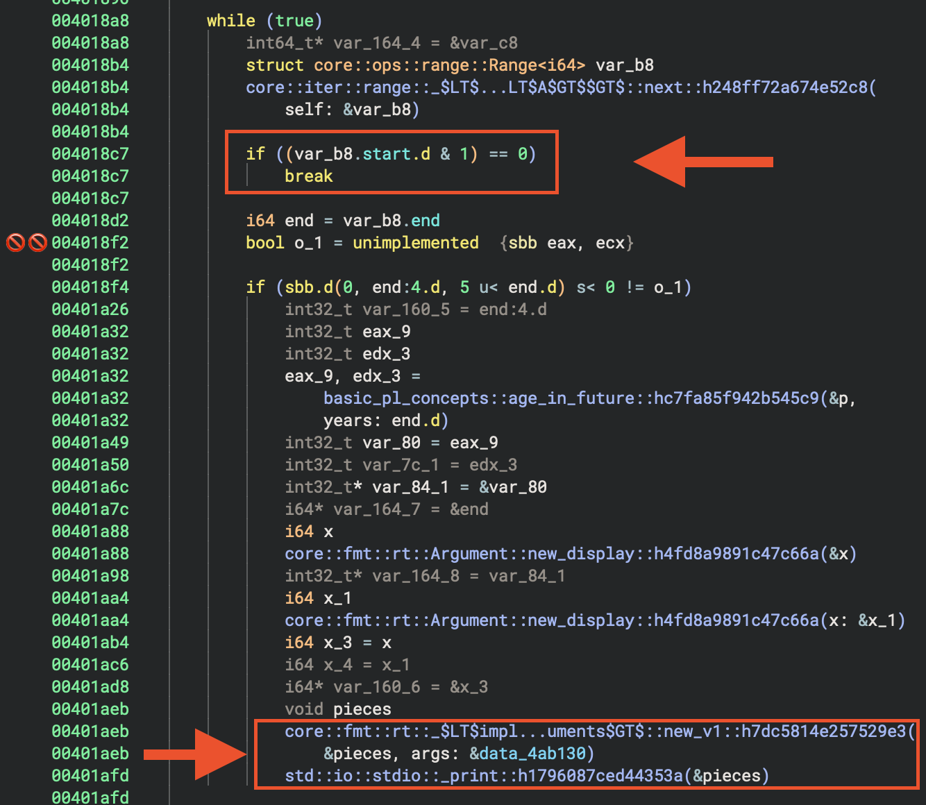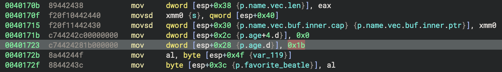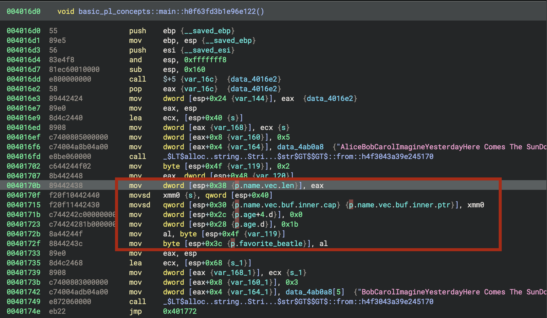 Hands-on analysis of basic Rust programming language concepts and their binary representations.