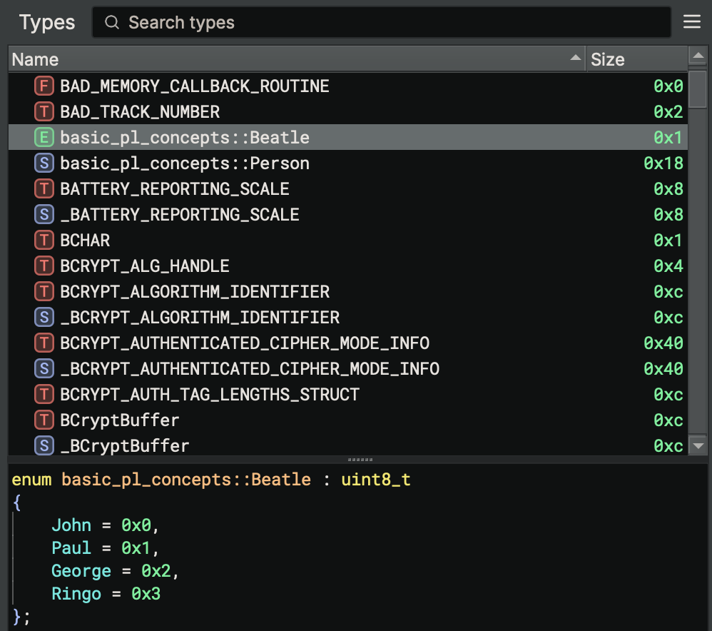 - Discriminant values: John=0, Paul=1, George=2, Ringo=3