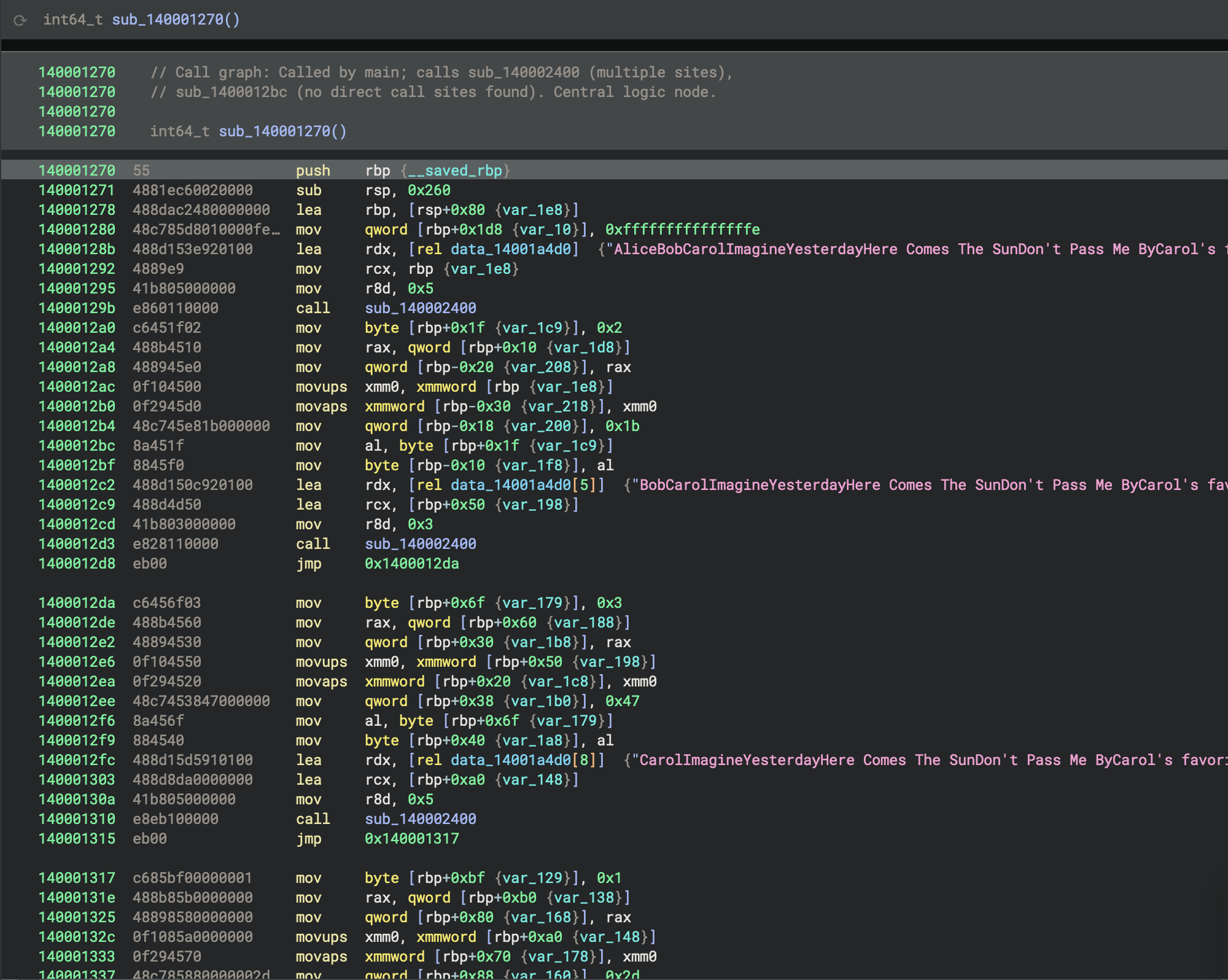 The wrapper function you see (main calling sub_140002520) is Rust-specific - it’s the Rust standard library’s runtime initialization that C doesn’t need.